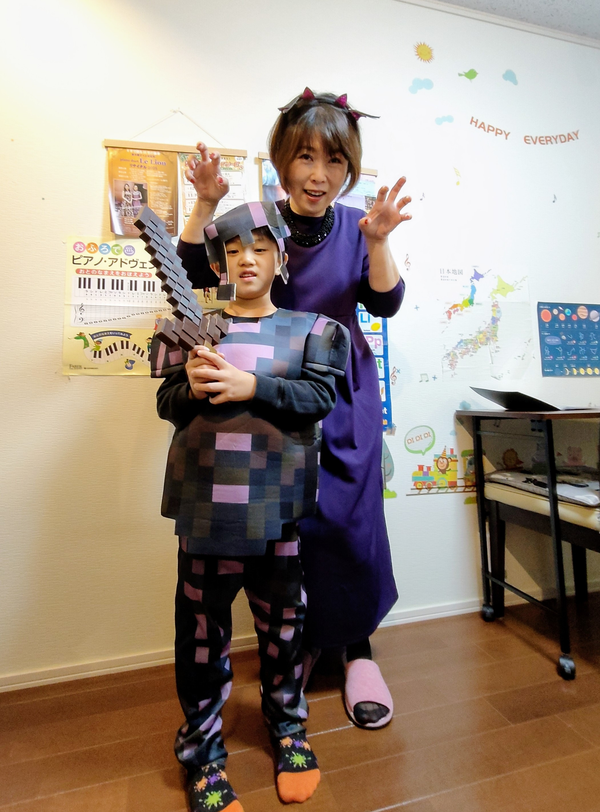 レッスンでは、テキスト「Piano Bop」から “Trick or Treat” や “Halloween” の曲を使って、歌ったり弾いたりしながらハロウィンの雰囲気をたっぷり楽しみました。